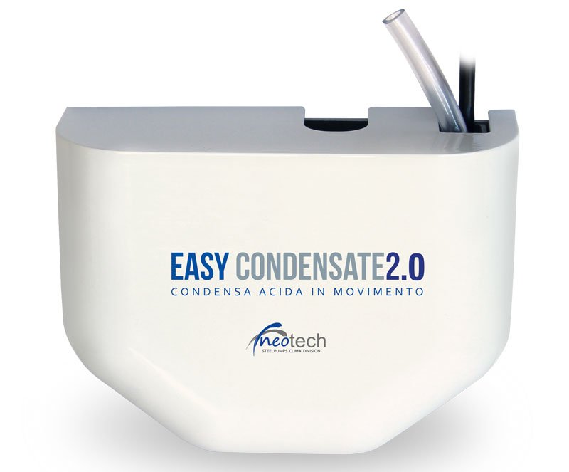 Description EASY CONDENSATE 2.0 is a system of pleasing design, created for collecting and draining acid condensate from the gas boiler. The quality of the materials used allows its use particularly in the f i eld of heating. Its small and compact dimensions enable its easy installation. The system is equipped with an extremely quiet pump and tank with inlet filtration.