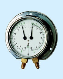 De manometer DR75 is ontwikkeld voor drukmeting op freon installaties. Uniek is dat zowel de zuig- als de persdruk op dezelfde manometer kunnen worden afgelezen.